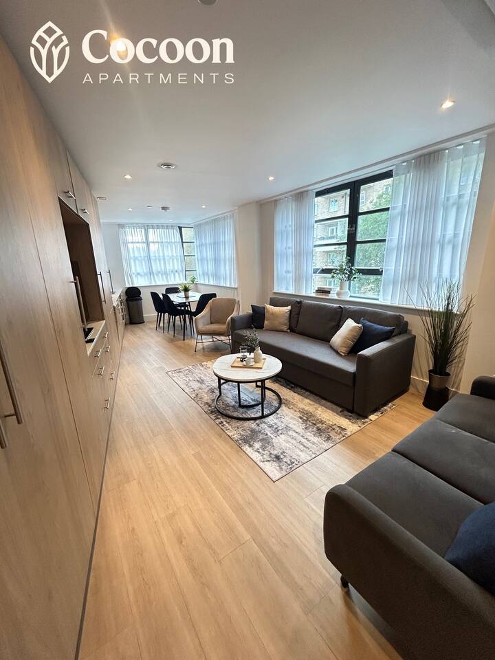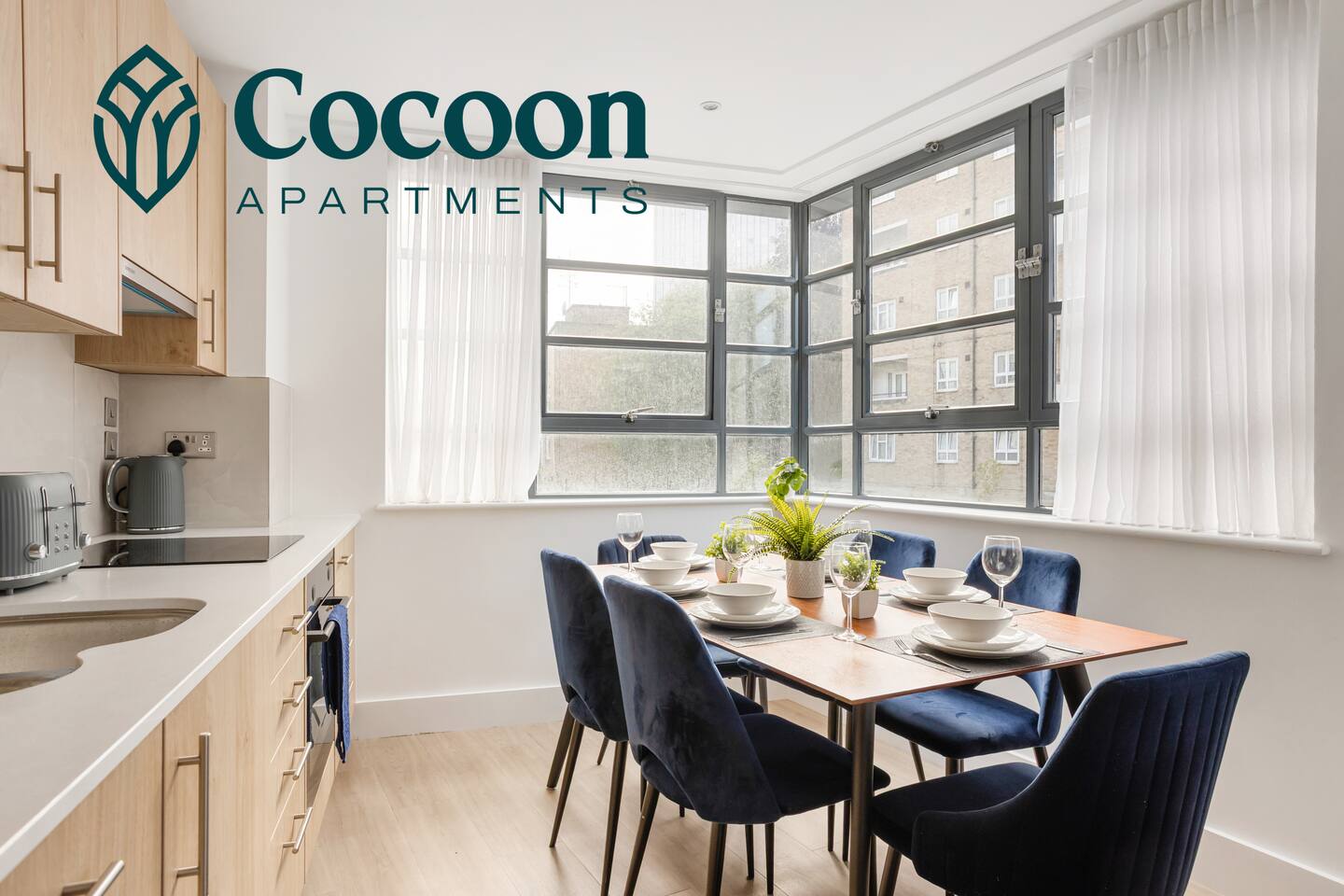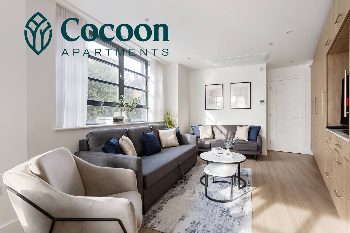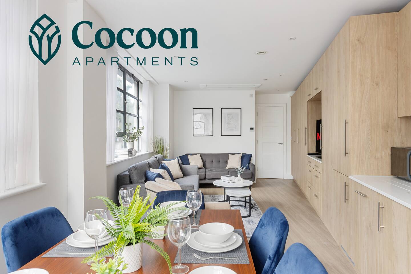 Cocoon Apartments presents a modern 2-bed, 2-bath serviced apartment in central London Zone 1, sleeping up to 7 guests. Perfect for short or long stays, it’s close to three Underground stations with excellent transport links. Featuring air conditioning, high-speed Wi-Fi, stylish interiors, and spacious living areas, it’s ideal for business trips, relocations, contractor projects, insurance stays, and leisure visits – a true home-from-home for families, groups, and professionals.