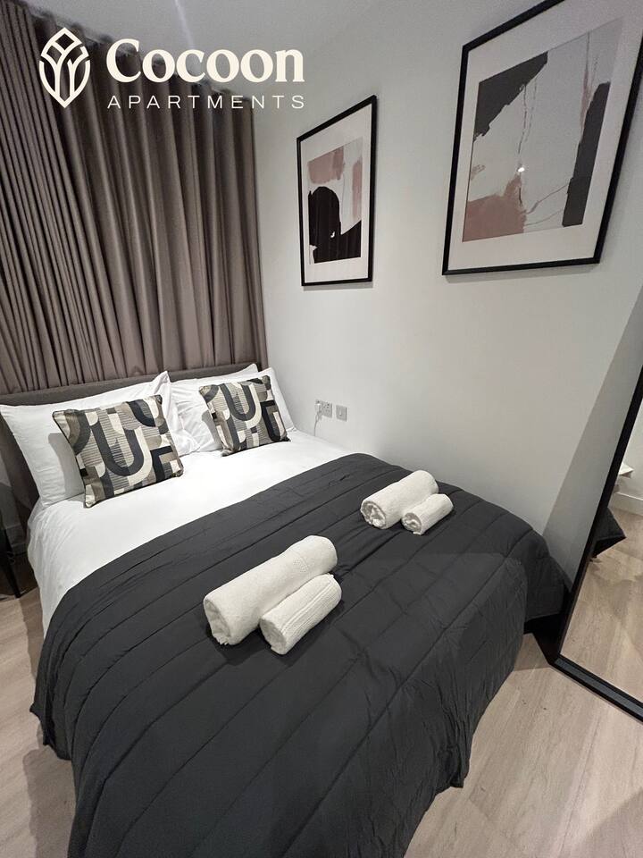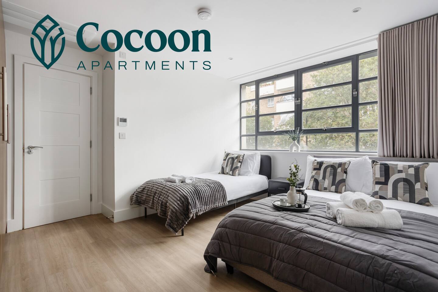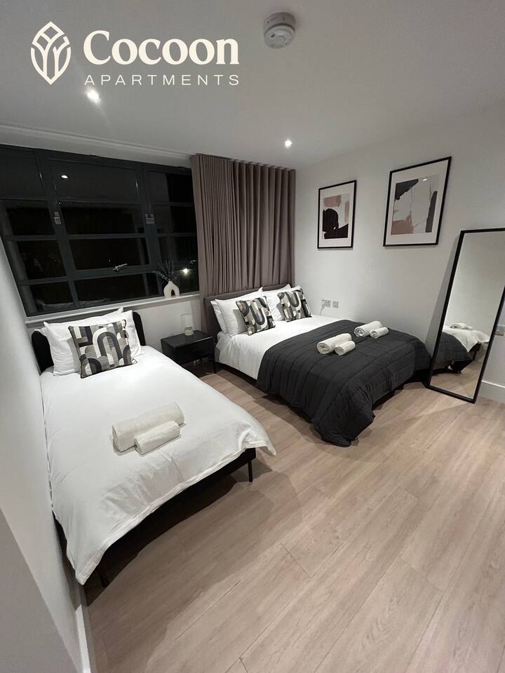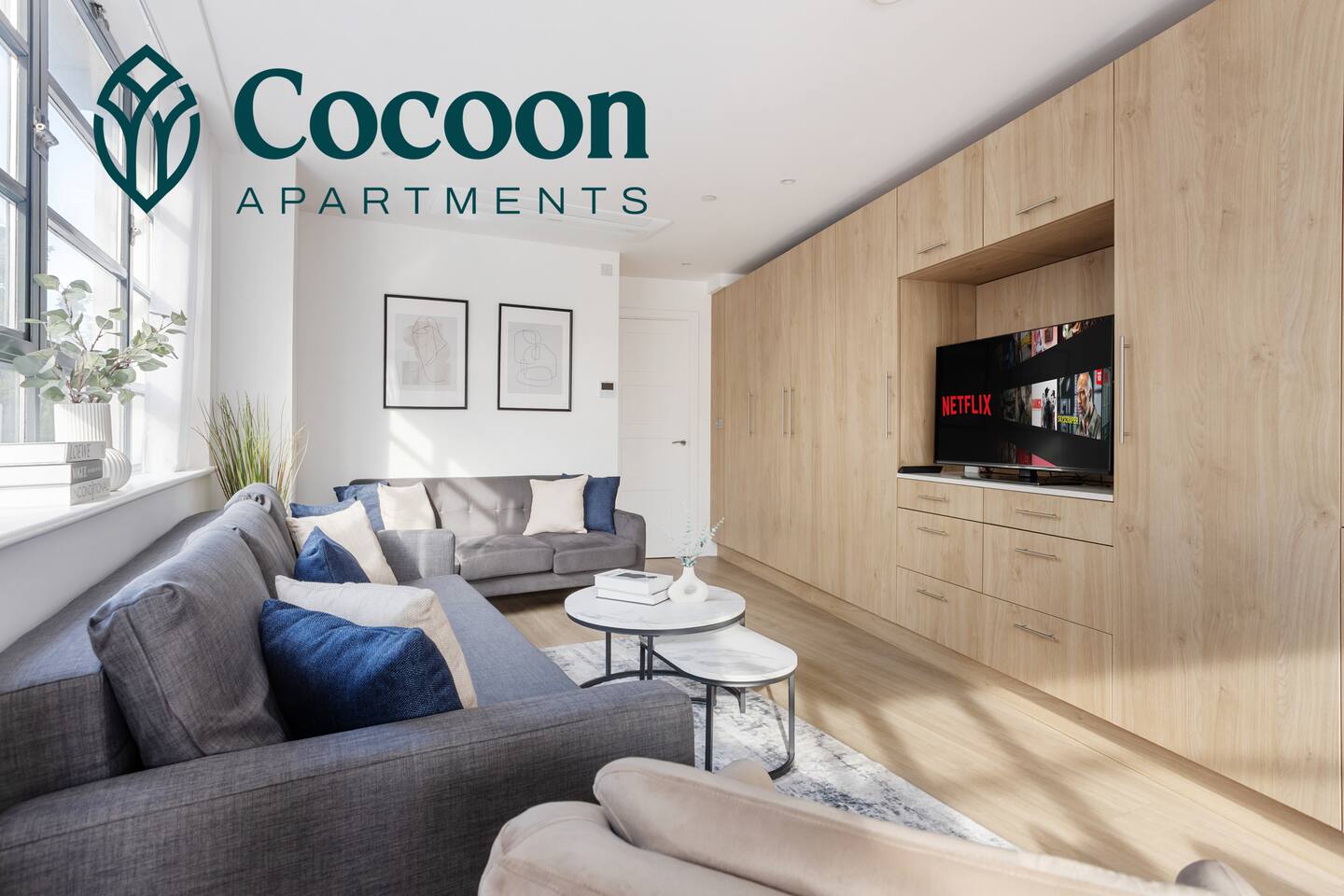 Cocoon Apartments presents a modern 2-bed, 2-bath serviced apartment in central London Zone 1, sleeping up to 7 guests. Perfect for short or long stays, it’s close to three Underground stations with excellent transport links. Featuring air conditioning, high-speed Wi-Fi, stylish interiors, and spacious living areas, it’s ideal for business trips, relocations, contractor projects, insurance stays, and leisure visits – a true home-from-home for families, groups, and professionals.