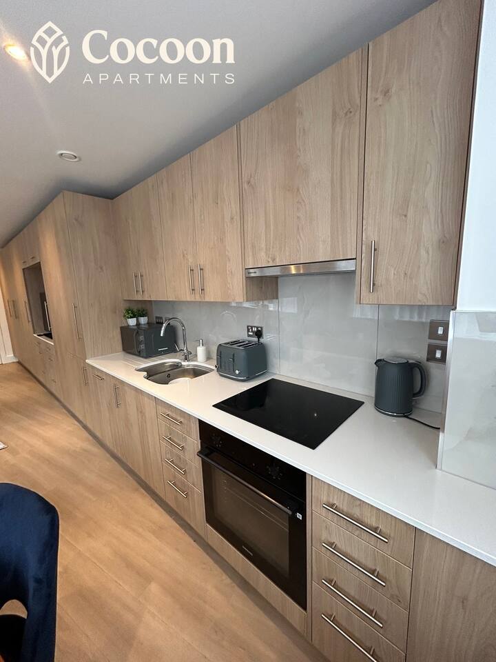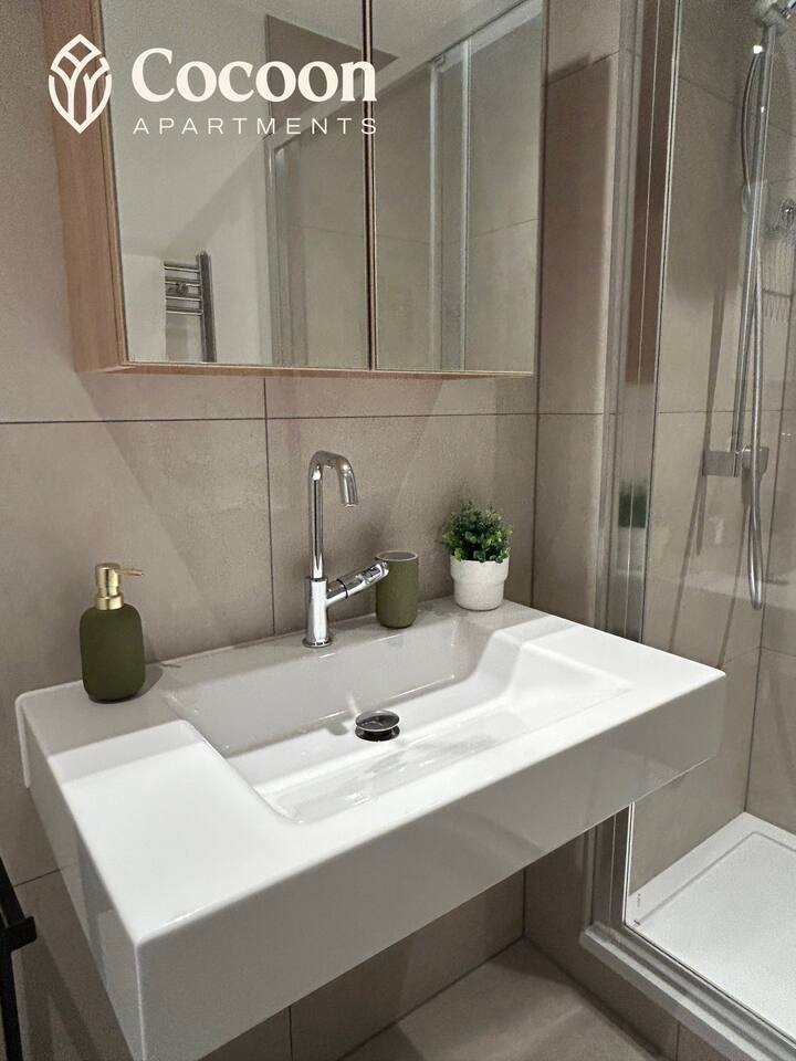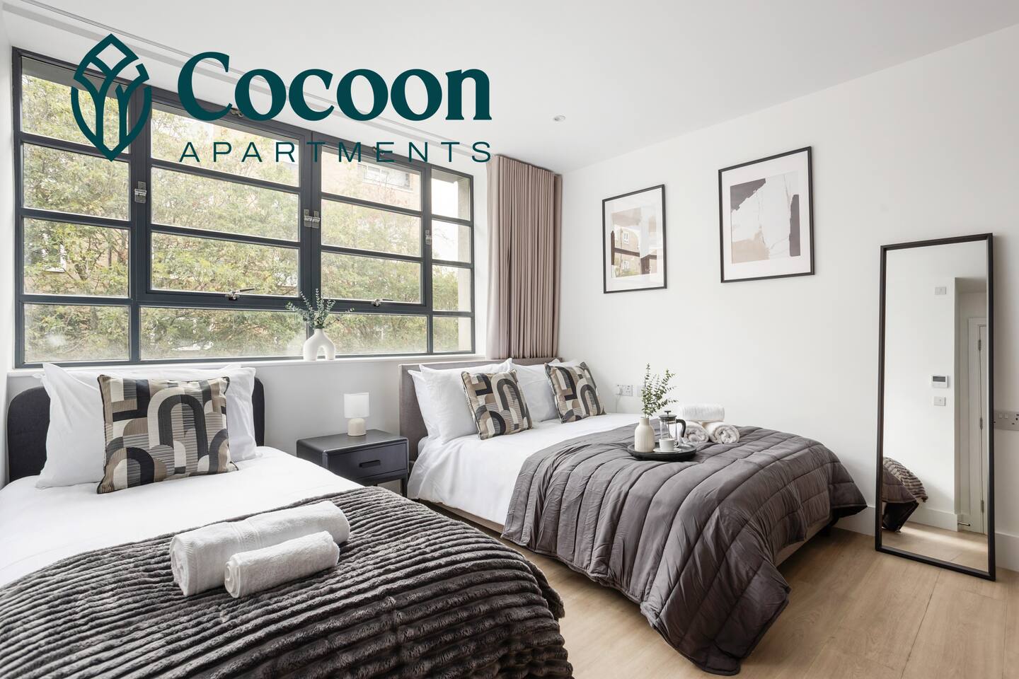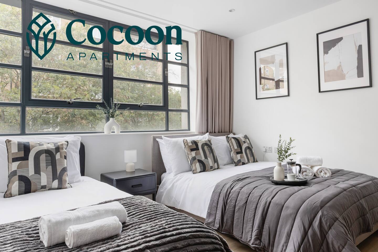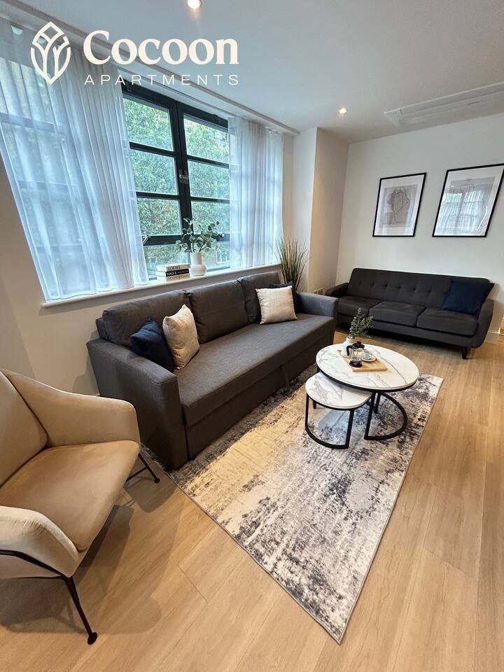 Cocoon Apartments presents a modern 2-bed, 2-bath serviced apartment in central London Zone 1, sleeping up to 7 guests. Perfect for short or long stays, it’s close to three Underground stations with excellent transport links. Featuring air conditioning, high-speed Wi-Fi, stylish interiors, and spacious living areas, it’s ideal for business trips, relocations, contractor projects, insurance stays, and leisure visits – a true home-from-home for families, groups, and professionals.